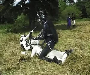 Latex Sub-Mädchen verkleiden sich in voll-Gummi