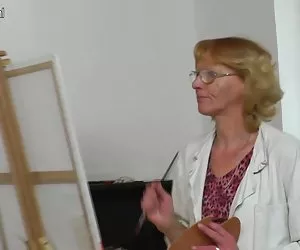alte Oma-Malerin wird durch ihre junge Model gefickt.