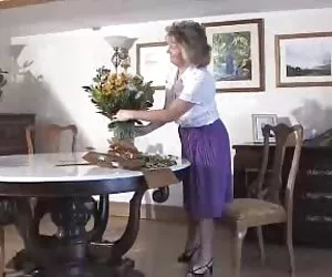 Adorable Oma tragen lila Gürtel und gesäumt Strümpfe