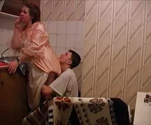 Oma wird von ihrem Jungen Lover in Küche gefickt.